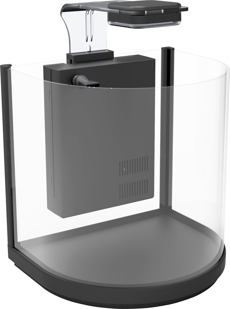 Дизайнерский аквариум полукруглой формы изготовленный из тайваньского стекла. Облицовка изготовлена из экологически чистого пластика. В комплекте аквариума вы найдете: прозрачную крышку из пластмассы, удобный внутренний фильтр Atman SP-200 (200л/ч), который крепится на заднюю стенку аквариума и светодиодный светильник CX-SP (5,6W). Вес: 4,52 кг.