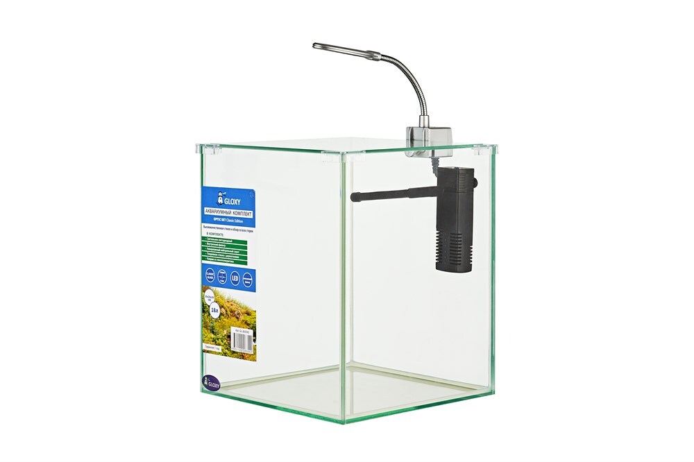 Гарантия: 1 год; Нагреватель в комплекте: Нет; Объём (л): 18; Освещение: LED; Размеры (Длина х Ширина х Высота): 25x25x30; Фильтр в комплекте: Да; Форма: Прямоугольный; Производитель: Gloxy